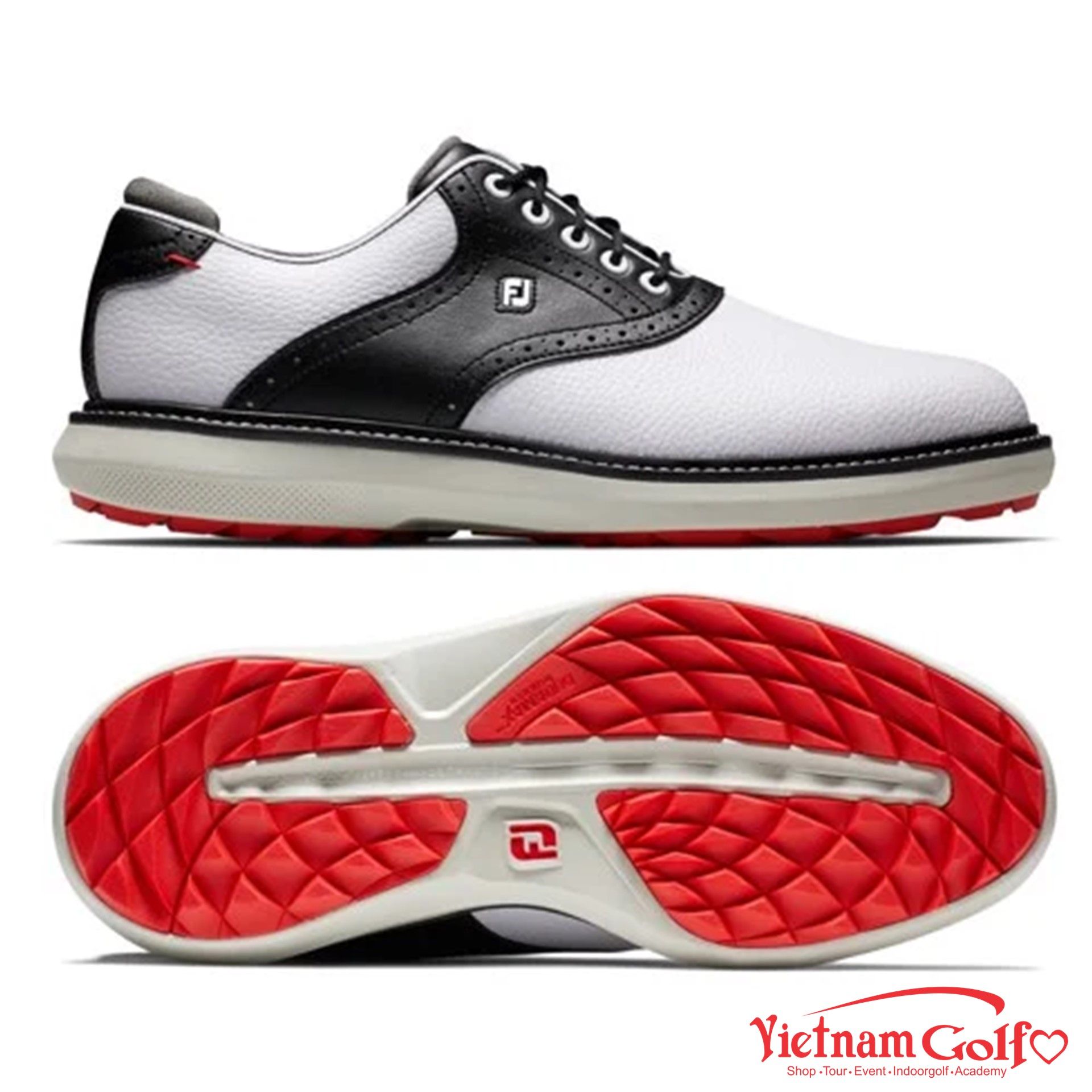 FJ Traditions cung cấp lực kéo hoàn toàn và có thể dễ dàng duy trì qua từng vòng. Sự thoải mái nhẹ và lớp bọt siêu đệm mang lại cảm giác di chuyển cực kỳ linh hoạt và thoải mái. FJ, đôi giày số 1 trong môn Golf.